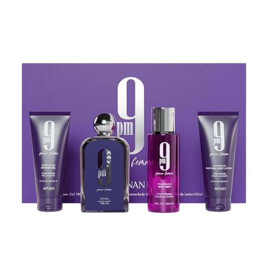AFNAN SET 9PM WOMEN 4PCS 3.4 OZ EDP SP / SHOWER GEL / BODY MIST /BODY LOTION