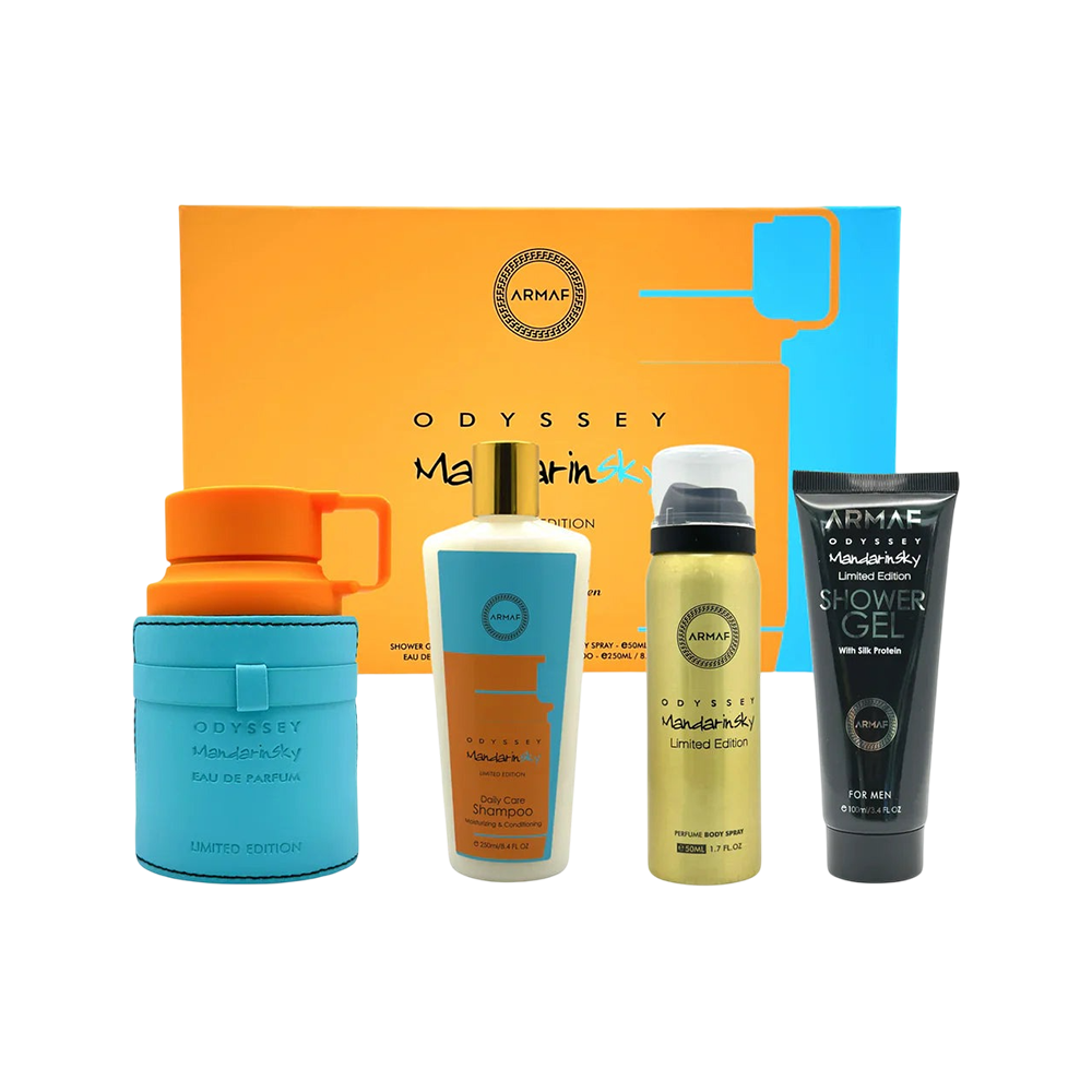 Perfect as a gift or a personal indulgence, the Armaf Odyssey Mandarin Sky 4 PCS Gift Set is a comprehensive package to elevate any man’s fragrance wardrobe with timeless elegance and modern vibrancy.